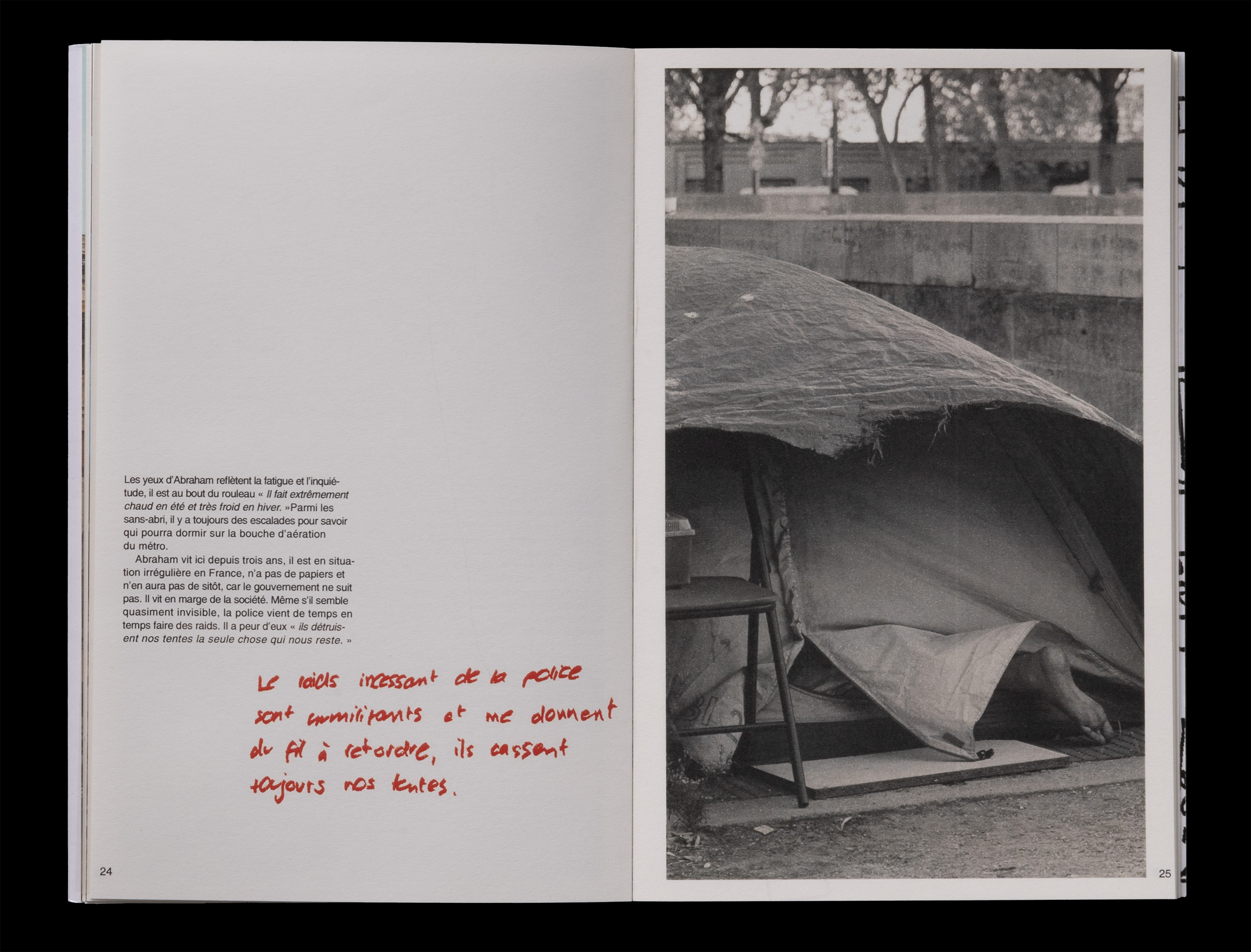 Inmitten der lebendigen Metropole Paris stiess ich auf eine Oase der Ruhe: Den Canal St. Martin. Die Umgebung, geprägt von Hausbooten, Zelten und Wohnungen, weckte mein Interesse für die vielfältigen Wohnmöglichkeiten und deren soziale Bedeutung in der Gesellschaft. Durch Gespräche mit den Bewohner:innen, konnte ich tiefere Einblicke in die verschiedenen Wohnsituationen gewinnen. Diese habe ich fotografisch festgehalten und durch Portraits ergänzt. Zudem habe ich mich auf typische Wiedererkennungsmerkmale der verschiedenen Wohnmöglichkeiten fokussiert. Das Ganze vervollständigte ich schliesslich mit kleinen, symbolischen Skizzen.