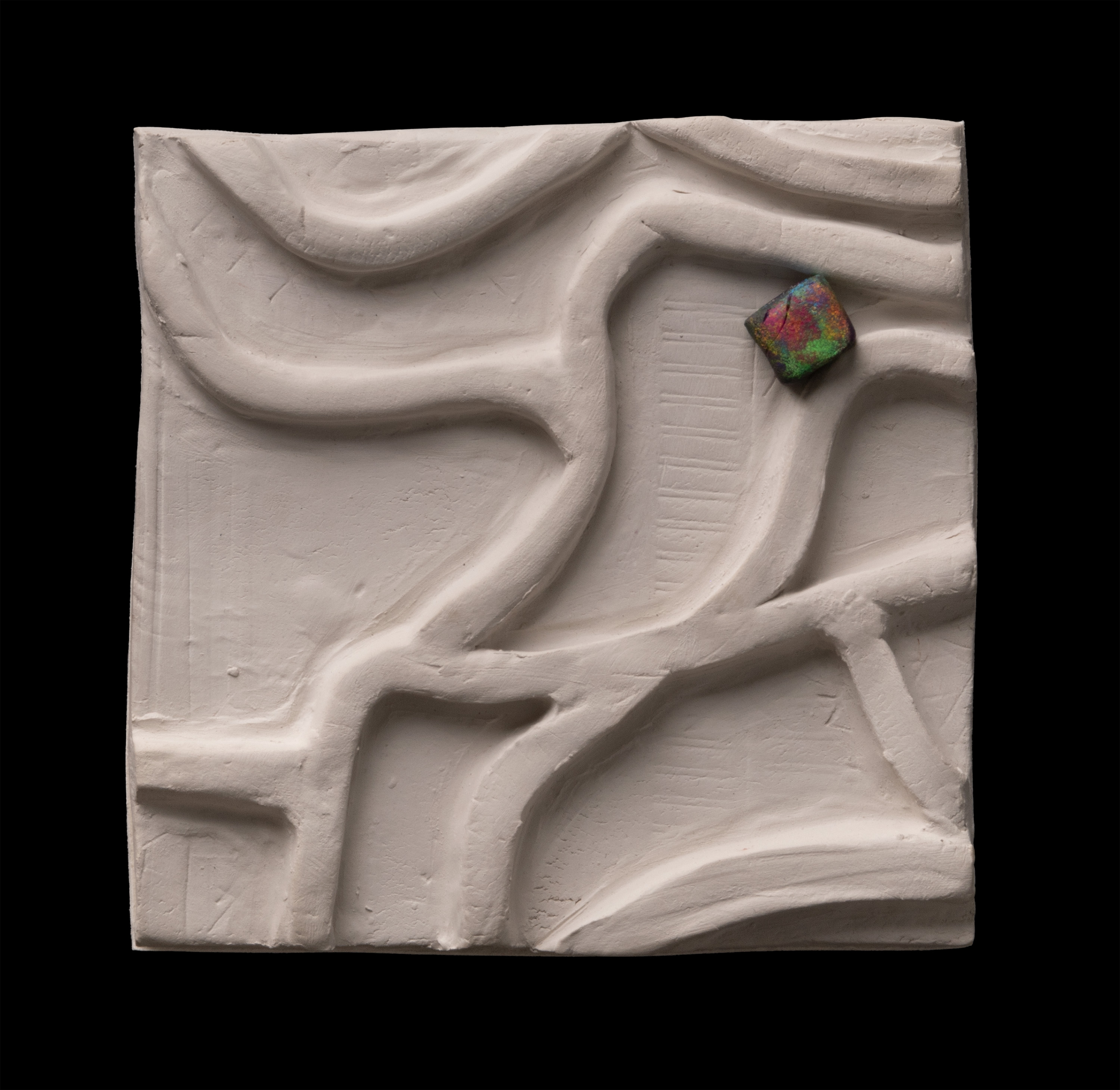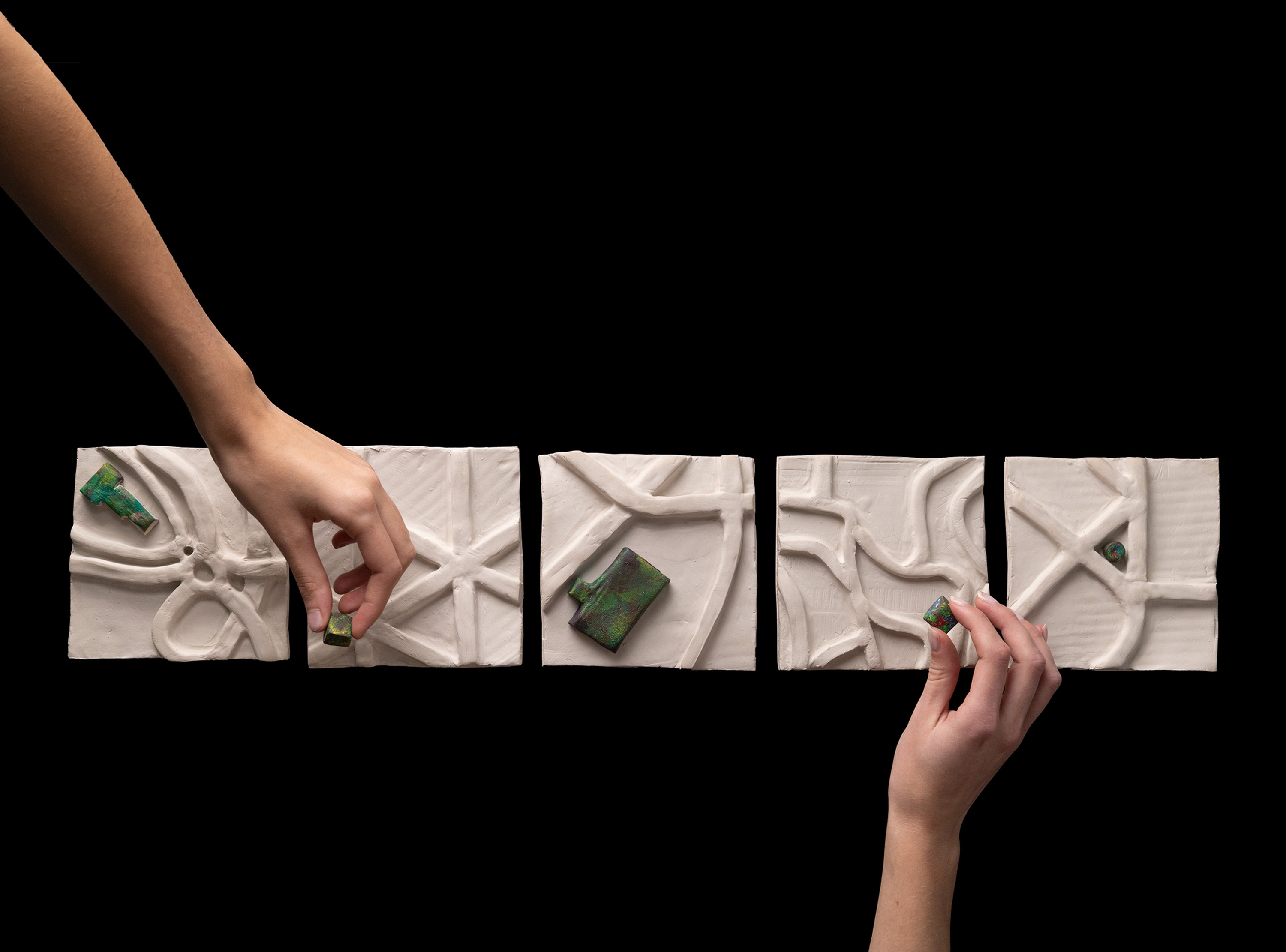 In einem 3D-Modell aus Ton setzte ich den Kontrast zwischen den grauen und eintönigen Autobahnen und den farbenfrohen, von Pflanzen übersäten Gartencentern anschaulich um. Während meiner ausführlichen Recherche zeigte sich, dass Gartencenter meist an Autobahnen zu finden sind und das nicht nur bei uns, sondern auf der ganzen Welt. Diese Tatsache fand ich äusserst absurd und gleichermassen inspirierend. Für die Umsetzung habe ich mich an fünf verschiedenen Ländern orientiert (Schweiz, Amerika, Deutschland, Spanien und Vietnam), in denen ich spannende Autobahnspuren im Zusammenhang mit Gartencentern gesehen und abstrakt dargestellt habe.